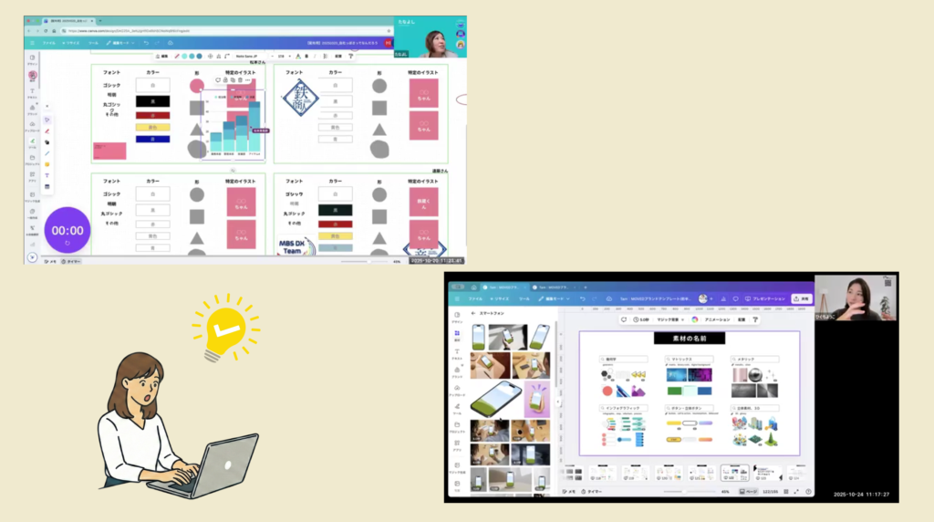 その成果は周囲の反応にも表れています。研修資料をCanvaで作成したところ、DX推進チーム長から、「 デザインが以前より良くなった 」と評価の言葉をいただきました。